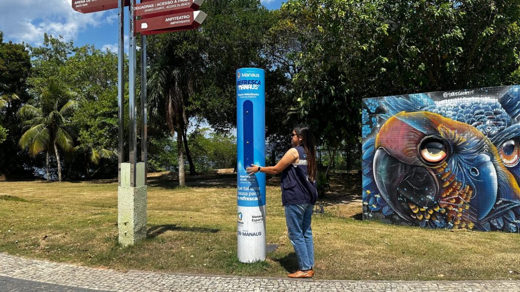 O projeto “Refresca Manaus” foi implantado em junho de 2024, com o objetivo de aliviar a sensação de calor e favorecer a prática de esporte e lazer pela população da cidade.