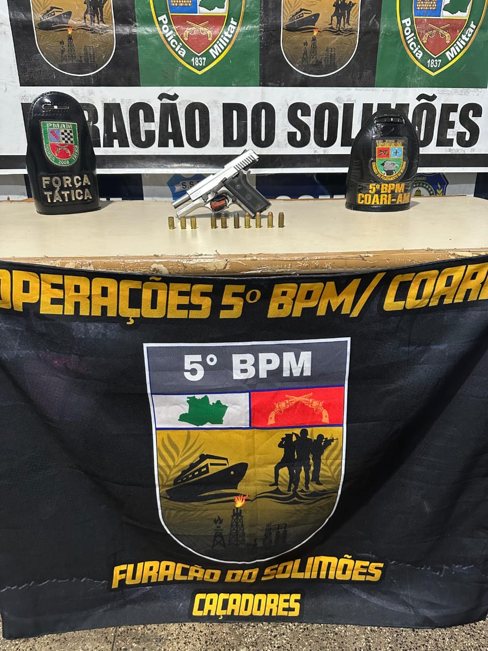 O corpo foi removido para o necrotério do Hospital Regional de Coari. Com o infrator a POLÍCIA MILITAR apreendeu 01 (UMA) PISTOLA NIQUELADA CALIBRE . 40 COM 07 (SETE) MUNIÇÕES NÃO DEFLAGRADAS e no local foram encontrados TRÊS ESTOJOS DE MUNIÇÕES CALIBRE. 40 DEFLAGRADAS. Todo material foi apresentado na Delegacia de Polícia Civil em Coari para os procedimentos legais.