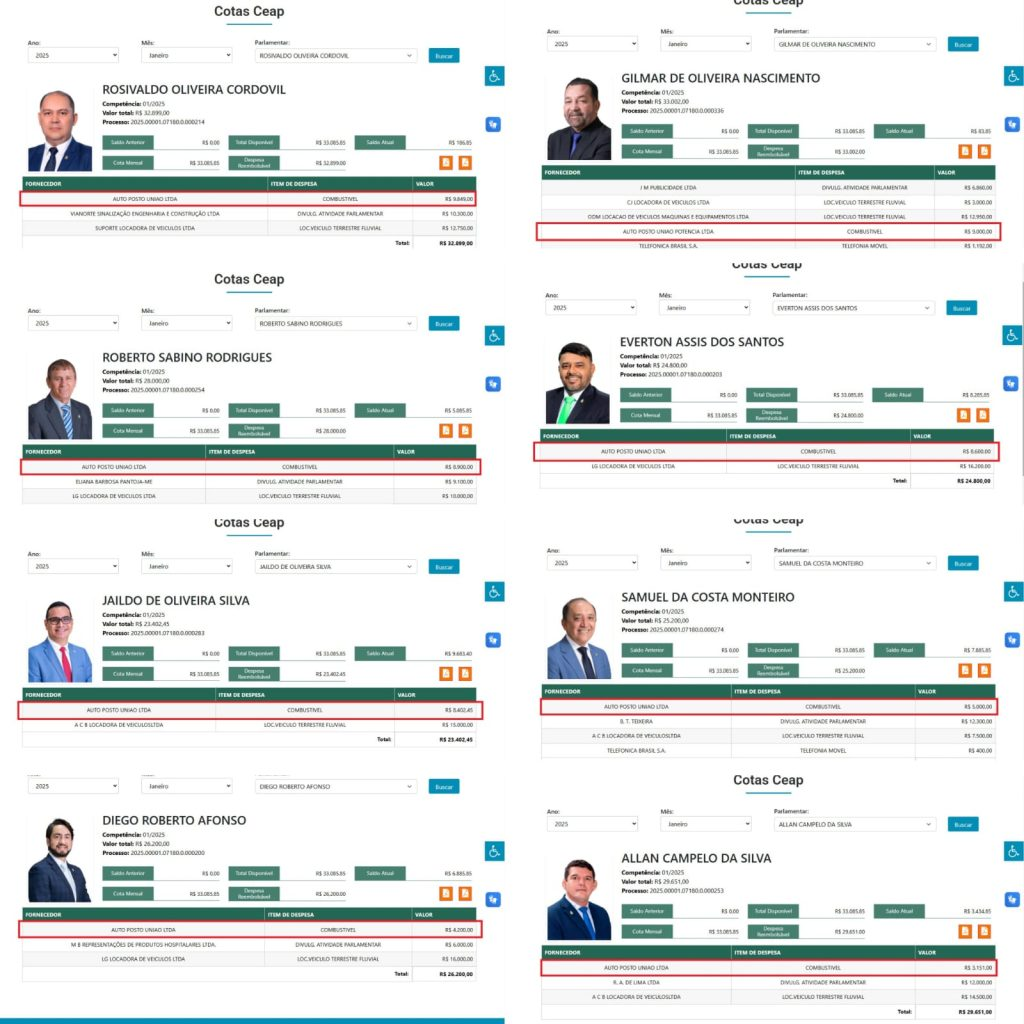 Notícias de Política – O posto de combustível Auto Posto União Ltda recebeu R$ 62.252,45 da Cota para o Exercício de Atividade Parlamentar (Ceap) de oito vereadores da Câmara Municipal de Manaus (CMM) somente no mês de janeiro deste ano.