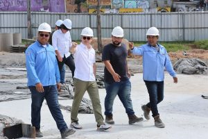 Durante a visita, o prefeito destacou que a penúltima laje do viaduto já foi concretada e que os trabalhos agora se concentram na preparação para a concretagem da última laje, prevista para ser concluída até o próximo domingo, 18/5. Além disso, a desmobilização do canteiro central já está em andamento, permitindo o início das intervenções na área onde será instalada a estrutura que simboliza a “rotatória do Produtor”.