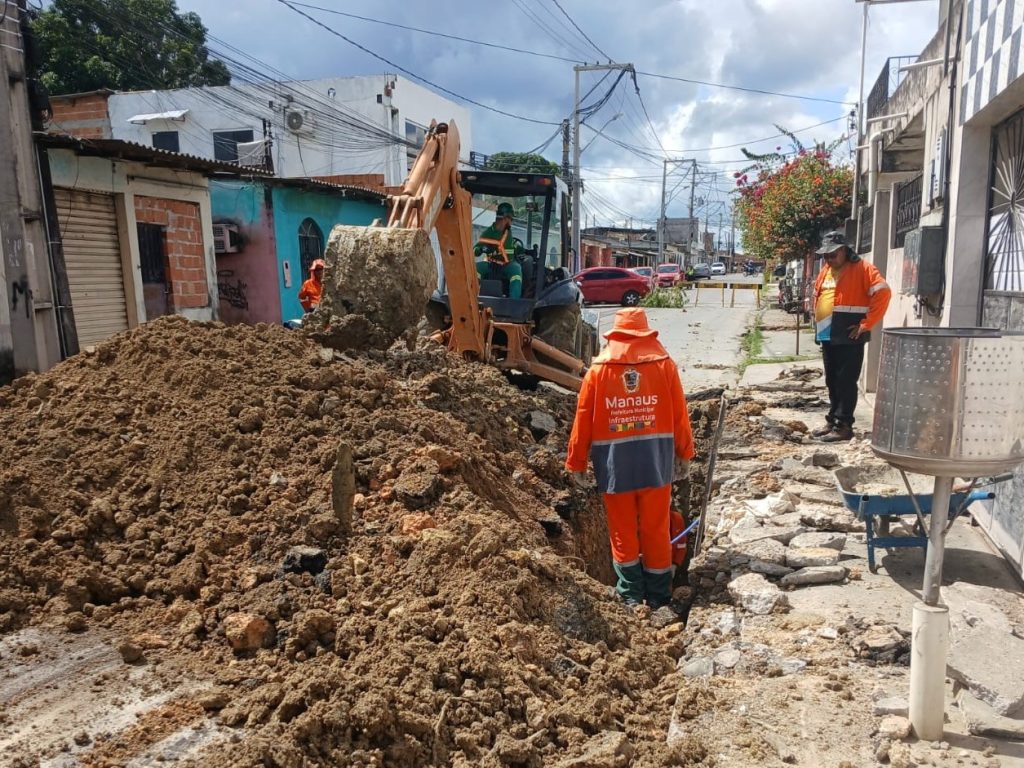 A Prefeitura de Manaus, por meio da Secretaria Municipal de Infraestrutura (Seminf), deu início, nesta quarta-feira, 4/6, a mais uma frente de obras com a implantação de uma nova rede de drenagem profunda na rua 147, no Núcleo 9, no bairro Cidade Nova, zona Norte da capital. A ação visa garantir a segurança dos moradores na região, melhorando a infraestrutura da área para o escoamento adequado das águas pluviais, prevenindo alagamentos e transtornos.