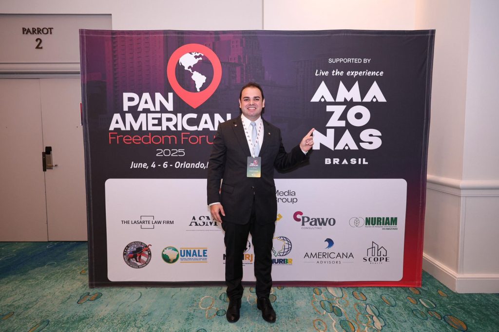 O presidente da Assembleia Legislativa do Amazonas (Aleam), deputado Roberto Cidade (UB), participou como palestrante do Pan American Freedom Forum 2025 (PanamForum), realizado de 4 a 6 de junho, em Orlando (EUA). Representando o Amazonas naquele que é considerado o maior encontro continental voltado à capacitação de líderes e à defesa das liberdades democráticas nas Américas, o parlamentar abordou temas como preservação ambiental, desenvolvimento econômico e social, e liberdade de expressão.